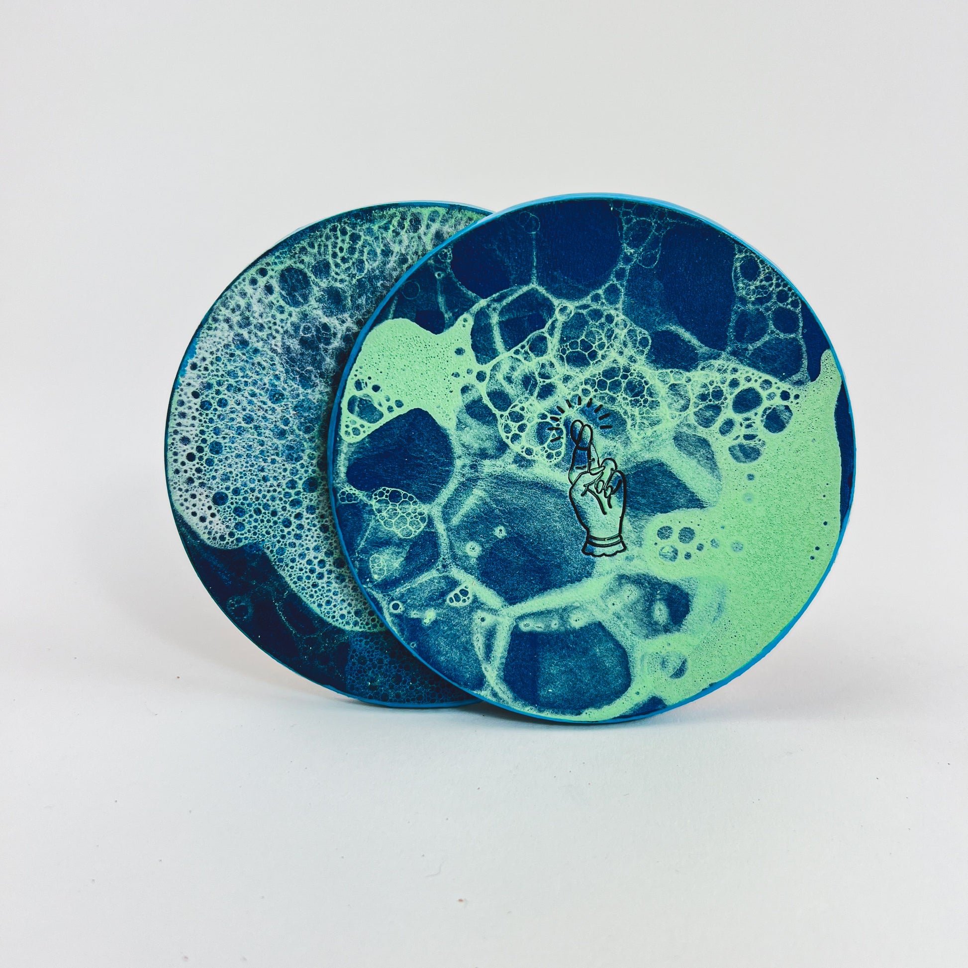 Set of two, cork-backed coasters.